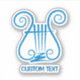 Das blaue Lyre-Symbol mit vier Strings. Eigener Text.