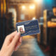 Elegantes und stilvolles marineblau-agate Marmorgeode-Design mit faux goldenen glänzenden Details. Ändern Sie das Foto und die Details auf der Vorderseite und QR-Code Website Ziel auf der Rückseite, um anzupassen.