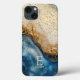 Blue marble chic gold glitter monogram Case-Mate iPhone hülle