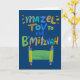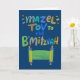 Blue Mazel Tov Hand-Painted B'Mitzvah Card Handgemalt in einem skurrilen Stil, diese Karte ist geschlechtsneutral und ist perfekt, um die B'Mitzvah zu beglückwünschen. Originelle Kunst von Laura Bolter Design.