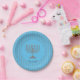 Elegante Sky Blue Menorah HANUKKAH Papier Teller, die Imitate silber grauen Menorah in einem gefliesten Muster. In der Mitte befindet sich ein Bild einer großen menorah, die CUSTOMIZABLE ist, sodass Sie Ihr eigenes Bild hochladen können. Darunter steht CHAG SAMEACH. Dies ist auch anpassbar, sodass Sie Ihren Gruß und/oder Namen hinzufügen können, etc (bis zu zwei Zeilen). Dieses minimalistische, einfache und elegante Design eignet sich besonders für Hanukkah und andere jüdische Feste. In anderen Farben, und passende Elemente sind verfügbar.