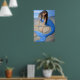 Eine melancholische, blauschwanzige Meerjungfrau zeichne ein Herz im Sand. Poster-Druck von "Blue Mermaids Heart" Fantasy Art Malerei von Sue Halstenberg.