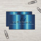Blue Metallic Brush Steel Script QR Code Visitenkarte