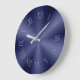 Blue Metallic Clock with Patterned Roman Numbers Große Wanduhr