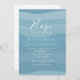 Einfache, moderne, elegante Kalligraphie Skript blau Mikro-Hochzeitsfeier Einladung mit bezaubernden, Aquarellfarben Ozeanwellen. Perfekte minimalistische Sommerhochzeit einladen.