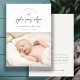 Blue Minimal Heart Script Foto Geburtsankündigung Dankeskarte