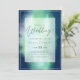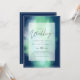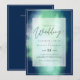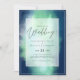 Moderne Hochzeitseinladung mit Textvorlagenfeldern auf beiden Seiten und einer Wolke von grünlich blauer Farbe.