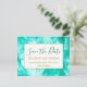 Moderne Elegant Chic Aqua Blue Watercolor und Gold Color Save the Date Card Postcard. Eine sehr elegante Karte mit Aquarelle. Einfach an Ihre Daten angepasst, ersetzen Sie den QR-Code durch Ihren eigenen. Diese Karte ist Teil einer Hochzeitssuite des Hochzeitsfestes.