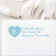 Hübsche Rücksendeadressen-Aufkleber, in Weiß, mit blauem Herzen, auf der verlassen Seite, mit einem weißen Monogramm mit einem Buchstaben. Personalisieren Sie den blauen Text und das Monogramm, um Ihre Bedürfnisse Anzug.