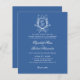 Diese Einladung zur Hochzeit bietet ein klassisches und elegantes Design mit einem raffinierten Blau-Weiß-Schema. Das Kernstück ist ein ausgeklügeltes Monogramm-Wappen, das eine personalisierte Touch hinzufügt. Die Einladungsdetails werden in einem eleganten Drehbuch- und Serif-Schriftart präsentiert, der traditionelle und zeitlose Elemente kombiniert, um eine schöne Ankündigung für Ihren besonderen Tag zu schaffen.