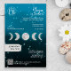 Moderne marineblaue Aquarellfarben-Ober mit Vollmonden und Halbstern, geometrischen Formen und Yoga Pose Silhouette Yoga Lehrer Studio Lehrer Klassen Flyer für Promo und Preisliste. Fügen Sie Ihr Logo, Social Media , Adresse und Zeitplan hinzu.