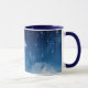 Für alle, die Sterne und leuchtende Farben lieben, beschreibt die Tasse für Sie einen wunderschönen blauen Sternenhimmel und einen Halbmond.