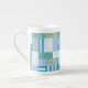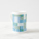Eine hübsche Knochen-China-Kaffee-Tasse, mit einem hübschen Imitat Patchwork aus Blumen-, Polka-Punkt-, Streifen- und Karo-Gingham-Mustern in Blau, Grün und Weiß: Teil der Posh & Painterly 'Morning Glory' Kollektion. (Dieses Muster passt zu allen Tasse.)
