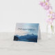 Beileidskarte mit einem ruhigen Foto von blauen, schneebedeckten Berggipfeln und einem ruhigen See und einem bewölkten Himmel. Mit tiefstem Beileid in Marineblau gegen die Wolke am Himmel. Mit tiefster Beileid-Karte mit einem wunderschönen Foto von blauen Bergen.