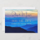 Mariage de montagne enregistrer les cartes de date avec l'image de montagnes bleues. Customisez avec un texte moderne et tourbillonnant pour les prénoms du couple en haut de la carte en bleu foncé sur un coucher de soleil / ciel lever. À moins que les noms complets ne soient courts, seuls les prénoms s'adaptent à l'espace. "Enregistrer la date" texte dans le centre sur les montagnes bleues vibrantes et la date et l'emplacement de l'événement dans le texte plus petit en dessous. L'inverse est bleu foncé. Mettez le papier à niveau comme vous le souhaitez.