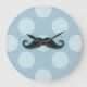Blue Mustache, Curl Mustache, Stache, Polka Dots Große Wanduhr
