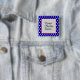 Ein roter, weißer und blauer Polka Dot Foto Button, der mit Ihrem eigenen digital hochgeladenen Foto angepasst werden kann. Das Design funktioniert mit den Quadrat- oder Rundknöpfen, aber der Rahmen-Ausschnitt bleibt quadratisch.