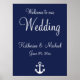 Blue Nautical Wedding Willkommenszeichen mit Anker Poster
