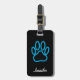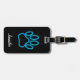 Blue Neon Dog Paw Print auf schwarz Gepäckanhänger