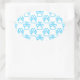 Blue Neon Dog Paw Print Pattern Ovaler Aufkleber