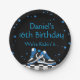 Blue Neon Sneaker Glitter Birthday Paper Plates, any age. Personalize with your party information