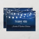 Elegante blaue Nacht und silberne Saitenleuchten Hochzeit danke Karte. Der Text kann über das Menü "Details" geändert werden. Klicken Sie auf den Button "Anpassen" und können Sie Text, Hintergrund und Papierfarbe ändern. Andere Farben sind verfügbar. Sie können den Papiertyp rechts im Menü "Papers vergleichen" ändern. Bitte kontaktieren Sie mich, wenn Sie Hilfe benötigen, passende Artikel benötigen oder besondere Wünsche haben.