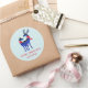Personalisierte Weihnachtsaufkleber mit hellgrünlich blauem Hintergrund. Illustriert mit einem blauen skandinavischen Hirsch mit roten Schals. Mit dekorativen Markierungen auf ihren Körpern.
