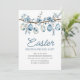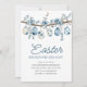 Osterbrunch und Eierjagd Einladung für Familien mit blauen Ostereiern, die an den Ästen eines Baumes hängen. Kontaktieren Sie mich, um Hilfe bei Ihren Anpassungen zu erhalten oder um zusätzliche Matching oder Koordination von Zazzle Produkten anzufordern.