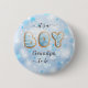 Opa zu Junge Duschknopf mit Blue und White Cookies, und Text Es ist ein Junge, weiß blaue Herzen Hintergrund. Babyduschknöpfe