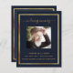 Un programme élégant de 2 pages. Un arrière - plan bleu foncé, un cadre en faux or et un espace pour votre photo. Personnalisez et ajoutez le nom, les dates et votre texte.