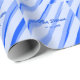 Blue pastel add name date boho retro lines pattern geschenkpapier