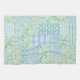 Ein elegantes Teetuch oder Küchentuch, mit einem Imitat im Landhausstil, das aus verschiedenen hübschen Periwinkle-Blumenmustern besteht und Polka Dot, Stripte und Karierte Muster in Blassblau, Grün und Weiß koordiniert. Teil der Posh und Painterly 'Periwinkle Patch' Kollektion.