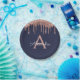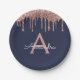 Blue Pink Rose Gold Glitzer Monogram Birthday Pappteller