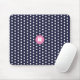 Polka dot monogram Mauspad. Rundes Monogramm in Rosa und Weiß mit marineblau-weißem Polka-Punkt-Hintergrund.