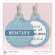 Erhöhen Sie den Stil Ihres Haustieres mit diesem personalisierten ID-Tag. Dieses mit blau-weißen Polka-Punkten und einem anpassbaren Haustier auf der Vorderseite und einer Telefonnummer auf der Rückseite geschmückte Etikett ist sowohl stilvoll als auch praktisch. Es ist das perfekte Accessoire, um sicherzustellen, dass Ihre wütenden Freunde überall sicher und modern sind. Passen Sie dieses ID-Tag an, um ein einzigartiges Geschenk für sich selbst oder die Liebhaber des Tieres in Ihrem Leben zu schaffen.