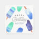 Diese niedlichen personalisierten Papierservietten sind für die Geburtstagsparty unserer Aquarellkinder konzipiert und zeichnen sich durch eine Reihe von Aquarellpopsikeln in Grün und Blau aus. "Happy Birthday [Name]" erscheint in der Mitte in whimsical Schriften.