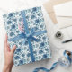 Discover this wrapping paper that mimics the beauty of hand-carved designs! Featuring a charming rose and watercolor leaf design, classic and earthy blue hues dominate with subtle hints of dark green, giving it an appearance reminiscent of fine china or antique porcelain.