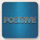 Dieser Untersetzer ist ein Blue Positive Affirmation Untersetzer Set. Der Untersetzer hat in der Mitte ein umrissenes blauer Positivwort. Es gibt eine bräunliche Kontur um die Buchstaben im Wort Positiv. Der Untersetzer ist ein Affirmation Untersetzer und ein typografischer Art Untersetzer. Der Untersetzer ist ein harter Untersetzer aus Kunststoff mit Korkunterlage. Es sind sechs Untersetzer im Set. Die Untersetzer sind quadratisch mit abgerundeten Ecken.