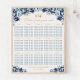 Ce tableau de sièges élégant et glamour Quinceañera présente une couronne d'or et de beaux arrangements floraux bleu poussiéreux avec des confettis d'or. Le texte combine écriture manuscrite et polices sans serif modernes pour un look élégant et sophistiqué. Graphiques par www.etsy.com/uk/shop/SunflowerDayLove