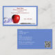 Blue QR Code School Teacher Red Apple Visitenkarte