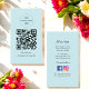 Einfache Blue QR Code Business Card mit Social Media Icons auf der Rückseite. Sie können auch die Hintergrundfarbe des QR-Codes ändern. Minimal Clean Pastel Business Card.