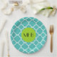 Blue Quatrefolie, marokkanische Trellis, Monogramm Pappteller
