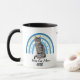 Voici une mignonne tasse pour la meilleure maman de chat. L'adorable image d'un chat tabby rayé gris se trouve devant un arc-en-ciel bleu et or de style boho coeur. En bas se trouve le texte qui dit "Meilleure Maman Chat JAMAIS". L'image est imprimée deux fois sur la tasse, avec son nom en haut entre eux. *Si vous désirez une autre couleur de chat sur cette tasse, n'oubliez pas de visiter notre magasin!