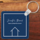 Dieser moderne Schlüsselanhänger ist mit dem Namen Ihres Immobilienunternehmens unter dem Namen des Agenten in schicke Typografie gefertigt. Diese minimalistisch blaue und weiße quadratische Schlüsselkette weist eine einfache Linie auf, die von einem Haus zeichne. Zeitgenössisches Geschenk für einen Agent, der Ihnen beim Kauf einer Zuhause behilflich ist.