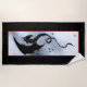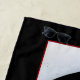Schwarzer Stammdrache mit blaugrauem Hintergrund mit kleinen roten Blume und roter Grenze.