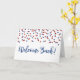 Herzlich willkommen auf der Rückseite mit rotem und blauem Konfetti-Muster. Perfekt, um Mitarbeiter wieder zur Arbeit zu empfangen.