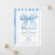 Diese charmante Baby Dusche Einladung zeigt einen Aquarellblau-Bogen auf der Vorderseite und blaue Aquarellstreifen auf der Rückseite. Sie können es mit Ihren Informationen personalisieren, um eine einzigartige Einladung zu erstellen. Klicken Sie einfach auf die Schaltfläche Bearbeiten/Personalisieren, um dieses Design anzupassen. Diese reizvolle Einladung ist Teil einer kompletten Babydusche-Suite.