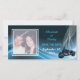 Blue Road Biker Hochzeit Save the Date Foto-Karte, mit einem Motorrad auf einem abstrakten Gradienten blau, weiß, schwarz Hintergrund und ein weißes Mesh. Einige Elemente mit freundlicher Genehmigung von Clipartandfonts.com.