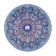 Zeichn eines Buntglasfensters aus einer alten europäischen Kirche: ein Rose-Fenster mit farbenfrohen Touchs, darunter Blautönen, auf hellblauem Hintergrund. Einlagerung von blauen Nashornsteinen. Dieses Motiv ist auch in Kardinal Rot in meiner "Kardinal Rosass" Kollektion erhältlich.