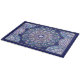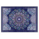 Zeichn eines Buntglasfensters aus einer alten europäischen Kirche: ein Rose-Fenster mit Touchs in verschiedenen Farbtönen, darunter Blautönen, auf marinebasischem Hintergrund. Einlagerung von blauen Nashornsteinen. Dieses Motiv ist auch in Kardinal Rot in meiner "Kardinal Rosass" Kollektion erhältlich.